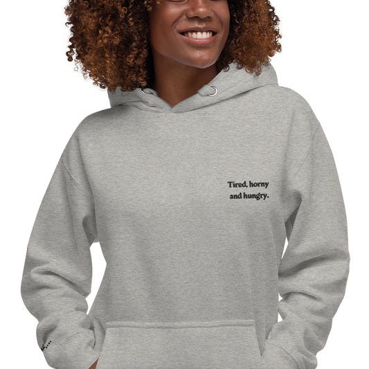 Tired,horny and hungry.